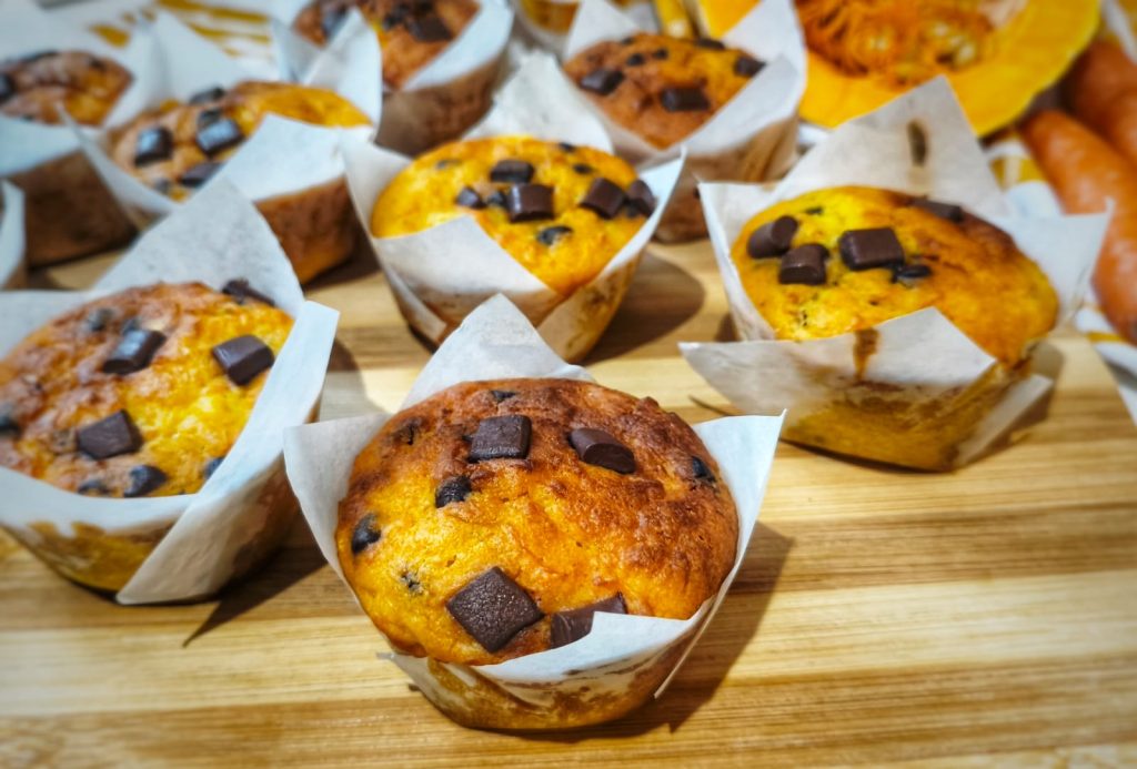 De pompoen- en wortelmuffins met chocoladestukjes zijn klaar!😊