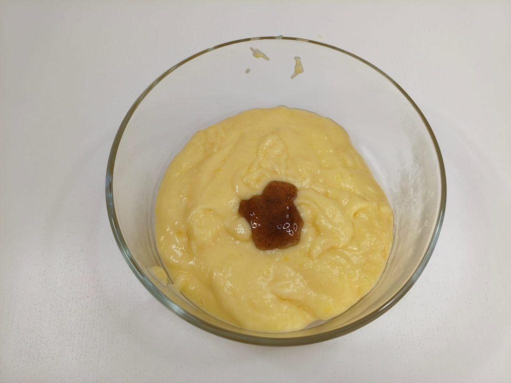 Giet de room in een kom, voeg het vanille-extract toe en na het mengen met de room bedek met een vel vershoudfolie. Laat afkoelen.