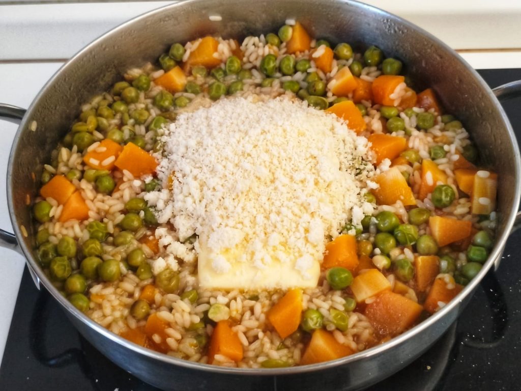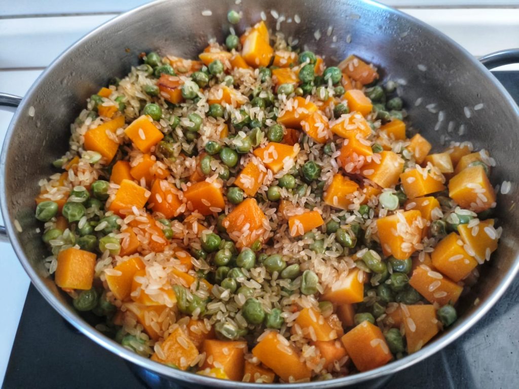 De risotto met pompoen en erwten is klaar!