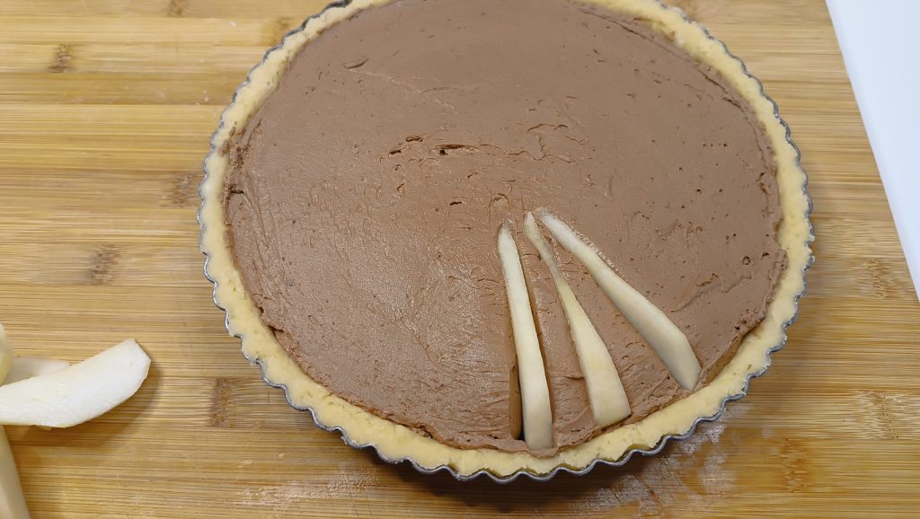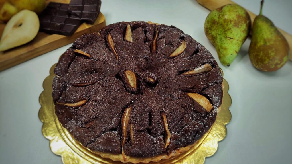 Met een knapperige zandtaartbodem en een romige en omhullende vulling is de peren en chocoladetaart het symbool van hoe een paar hoogwaardige ingrediënten een culinaire meesterwerk kunnen creëren. De peren, zacht en sappig, zorgen voor frisheid en lichtheid, waardoor de rijke en decadente smaak van de chocolade in balans wordt gebracht. Bovendien maakt de elegante presentatie haar ook geschikt voor belangrijke gelegenheden, waarbij je altijd een onberispelijke indruk maakt op je gasten.
