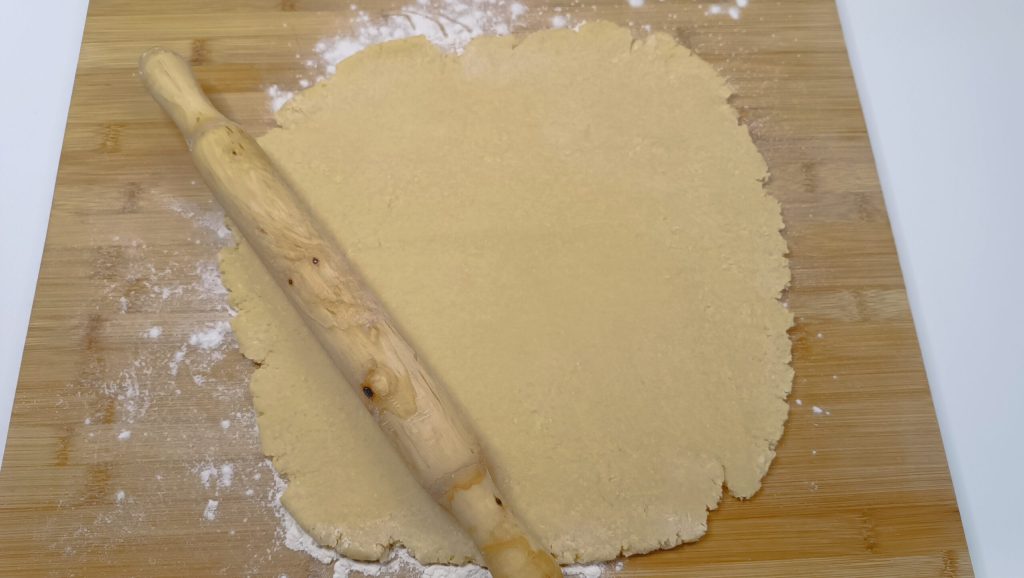 Rol het zanddeeg uit op een met bloem bestoven oppervlak