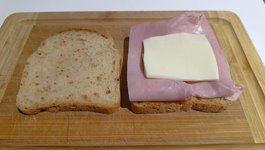 Plaats een dubbelgevouwen plak ham binnen in het brood