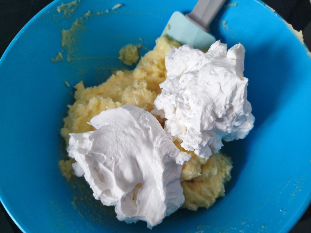 Spatel de opgeklopte eiwitten erdoor met langzame bewegingen van onder naar boven.