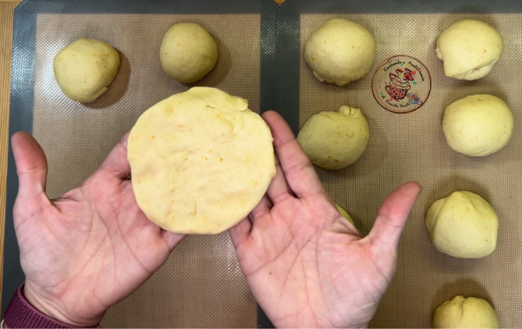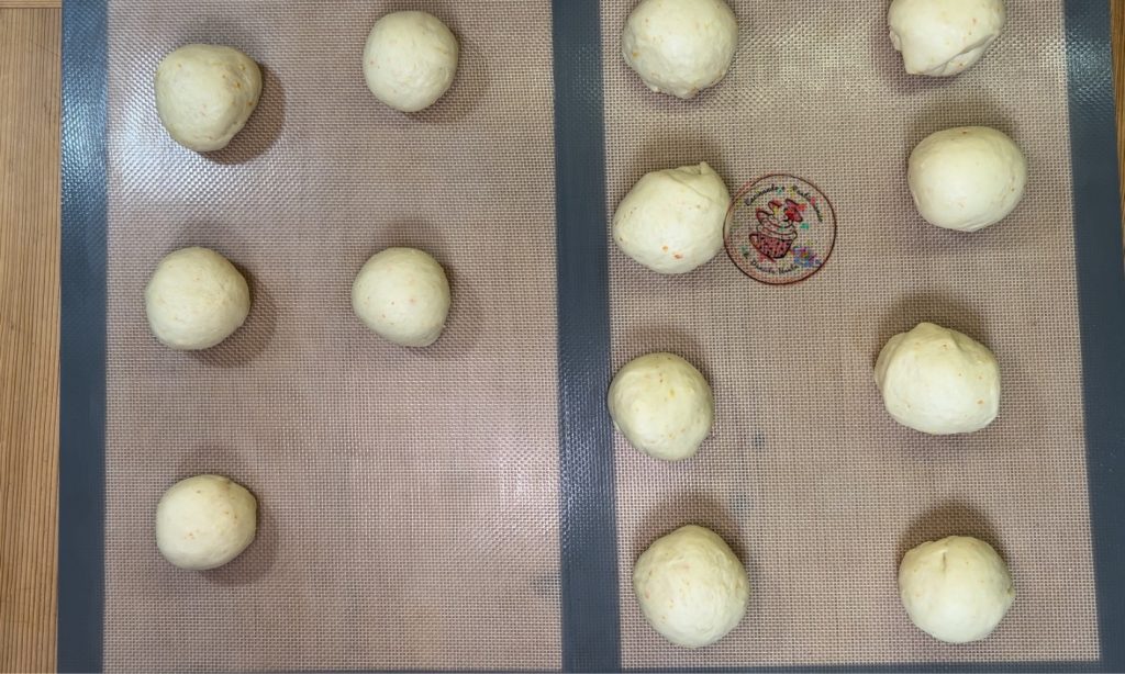 Wanneer het verdubbeld is, verdeel het deeg dan in ongeveer 13 balletjes, afhankelijk van hoe groot je ze wilt hebben.
