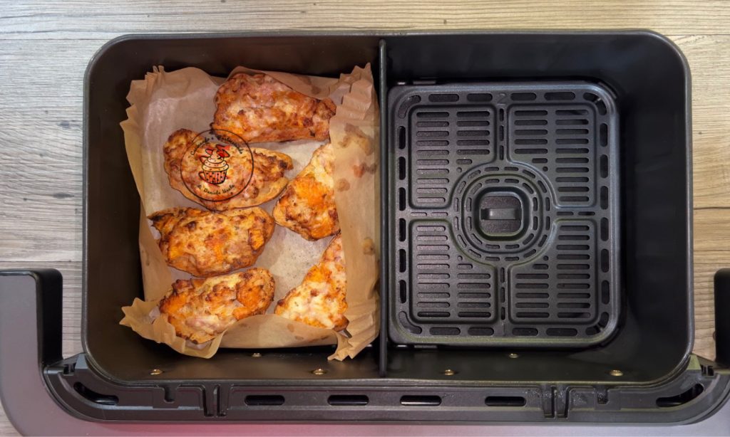 • Plaats de crostini in de mand van de heteluchtfriteuse en laat ze 3 minuten gratineren.