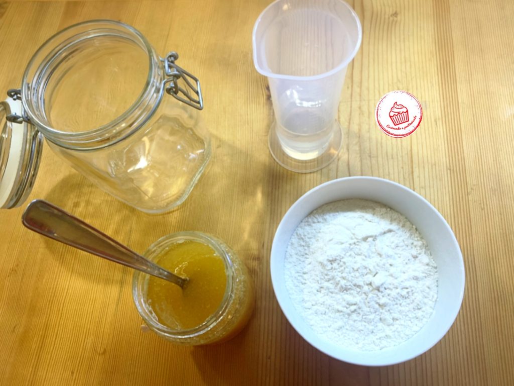 • Giet de bloem, de honing en het water in een kom, kneed snel met de hand tot je een glad en zacht deeg krijgt.