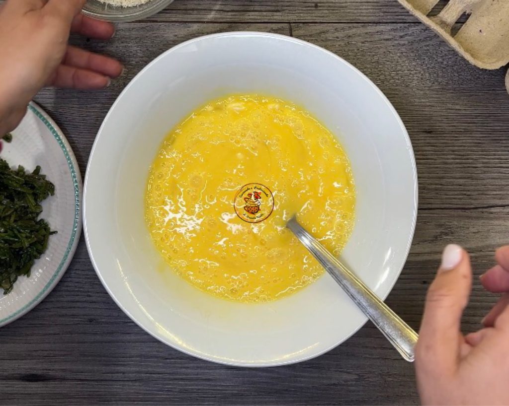 Voeg de eieren toe en klop ze goed met een vork.