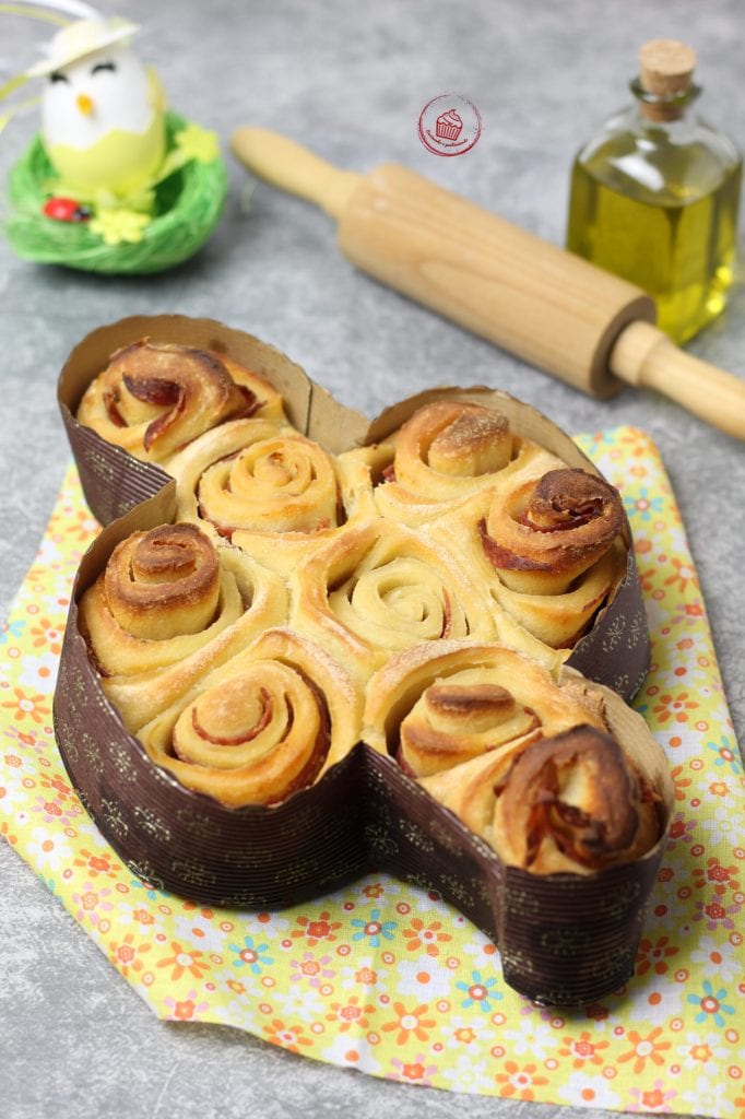 Vandaag heb ik namelijk de gevulde broodduif bereid met het deeg van het Brood zonder kneden met desem. Heerlijk!!! Om het te vullen heb ik salami gebruikt, maar hier kun je je fantasie de vrije loop laten en het vullen met wat je maar lekker vindt.