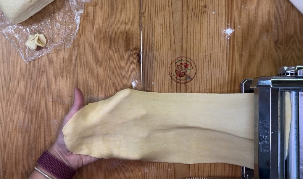 • Na het rusten, heb ik met de deegroller kleine stukjes deeg uitgerold. Maak ze heel dun.