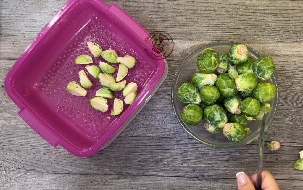 Maak de spruitjes goed schoon, verwijder de hardste buitenste bladeren en snijd ze in vieren. Stoom ze ongeveer 10 minuten.