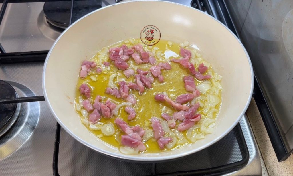 Bak het spek samen met de ui in een koekenpan.