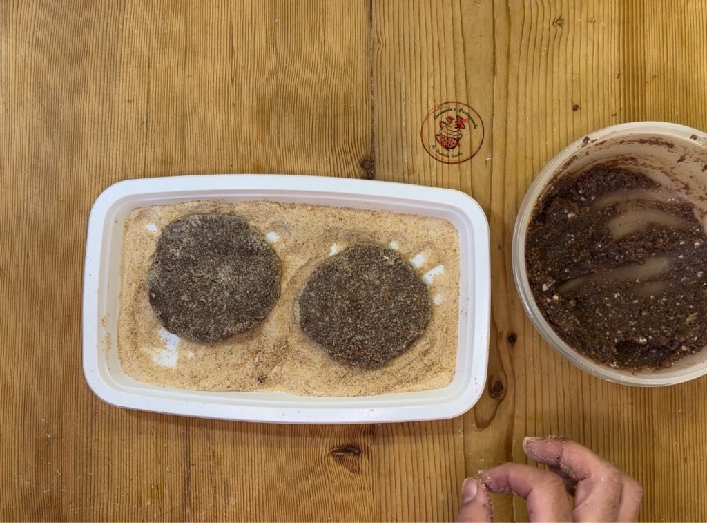 Meng goed en vorm de burgers die je in paneermeel rolt.