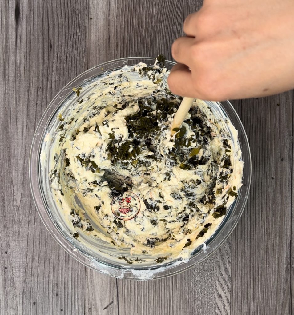 Voeg de koude, gehakte snijbiet toe en meng goed.
