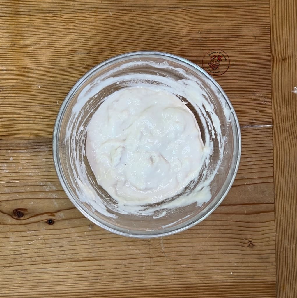 • Laat het deeg nu ongeveer 30 minuten rusten en doe vervolgens 3 series van vouwen in de kom met tussenpozen van 30 minuten.