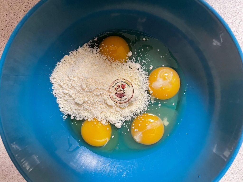 • Klop de eieren goed in een kom samen met de geraspte kaas.