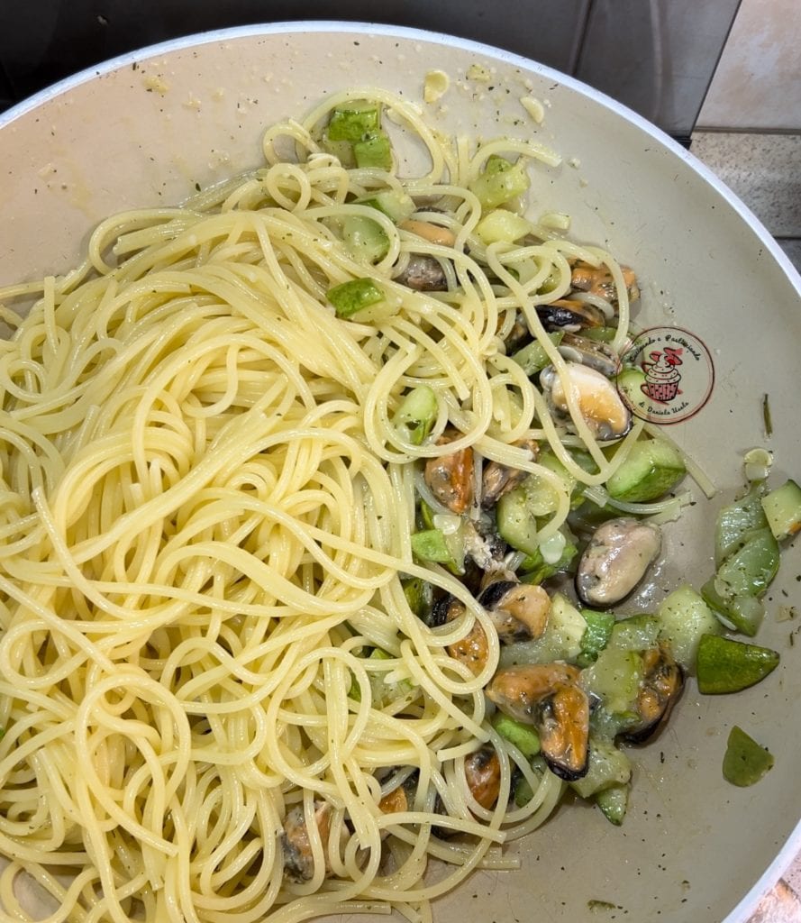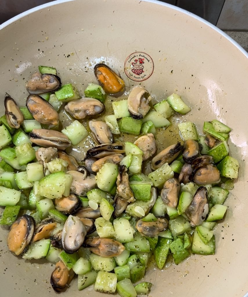 Vandaag heb ik een heel snel hoofdgerecht bereid, ondertussen dat de pasta kookte, heb ik de saus bereid. De pasta, in mijn geval spaghetti, met courgettes en mosselen. De pasta met courgettes en mosselen ontdekte ik per toeval. In het begin zou het een simpele pasta met courgettes worden, maar op het laatste moment, aangezien ik mosselen had, besloot ik er een paar toe te voegen aan de courgettes. En daar begon mijn liefde voor deze pasta. Heerlijk en eenvoudig te bereiden. Hebben jullie deze combinatie ooit geprobeerd? Ik beveel het aan. Probeer ook;