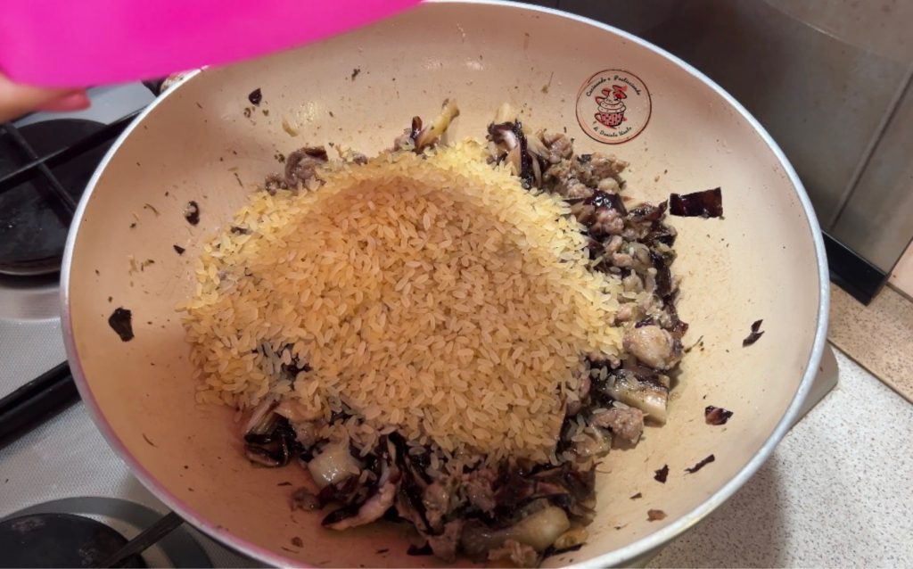Voeg de gewassen en gesneden radicchio toe. Breng op smaak met zout en kook nog 5 minuten. Ondertussen bereiden we de groentebouillon.