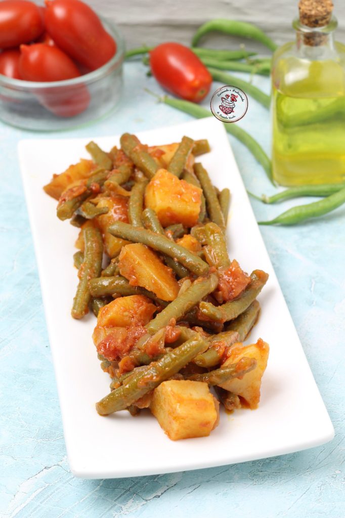 Herinner je je de Sperziebonen in tomatensaus die ik een paar weken geleden heb gemaakt? Vandaag heeft mijn man opnieuw een mooie hoeveelheid sperziebonen geoogst, maar ik heb besloten, of beter gezegd, hij stelde voor, om ze met aardappelen te maken. Het was de eerste keer dat ik ze op deze manier kookte en ik moet zeggen dat ze echt heel lekker zijn. Normaal gesproken maak ik sperziebonen als Salade, maar ik moet toegeven dat ze ook zo bereid goed smaken. Sperziebonen in tomatensaus met aardappelen zijn heel makkelijk te maken, in ongeveer 20 minuten zijn ze klaar. Ze zijn heerlijk zowel warm als koud. Probeer ze eens.