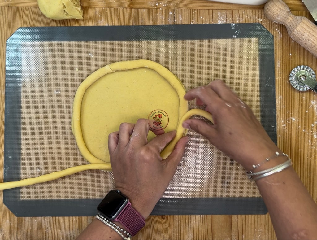 Plaats ze op de rand van de deegcirkel. Eerst één.