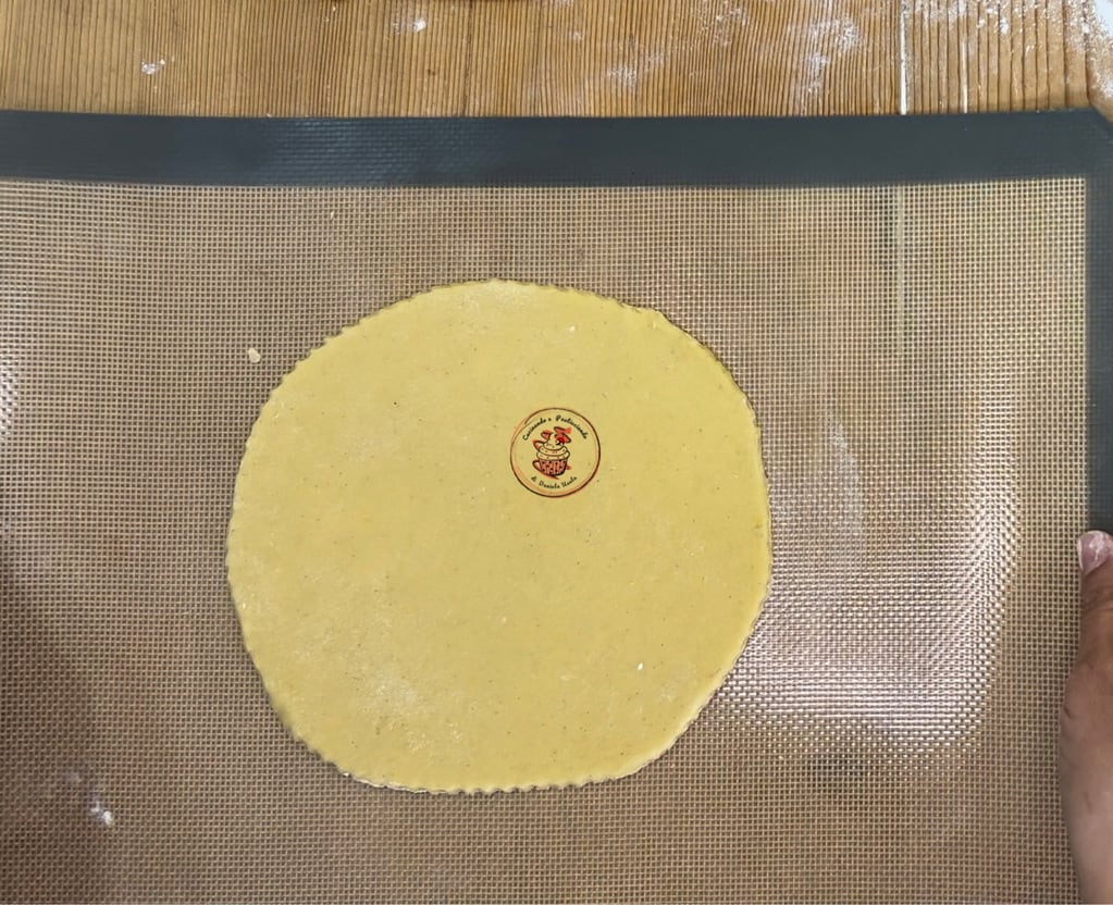 Snijd een cirkel (kies zelf de grootte) met deze hoeveelheid krijg je 2 taarten van 26 cm.