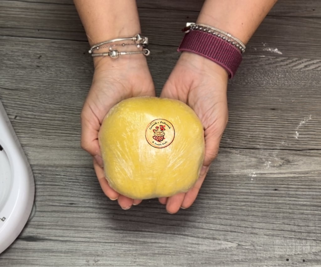 Doe alle ingrediënten van het zanddeeg in de keukenmachine en werk het enkele minuten met de vouwhaak. Wanneer het deeg van de wanden loskomt, is het klaar.