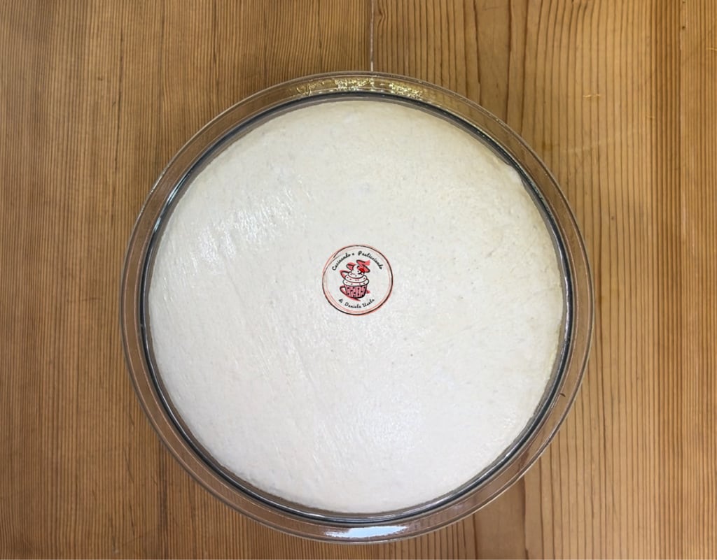 • Transfer naar het werkblad en vorm een bal. Plaats in een ingevette kom en dek af met folie.