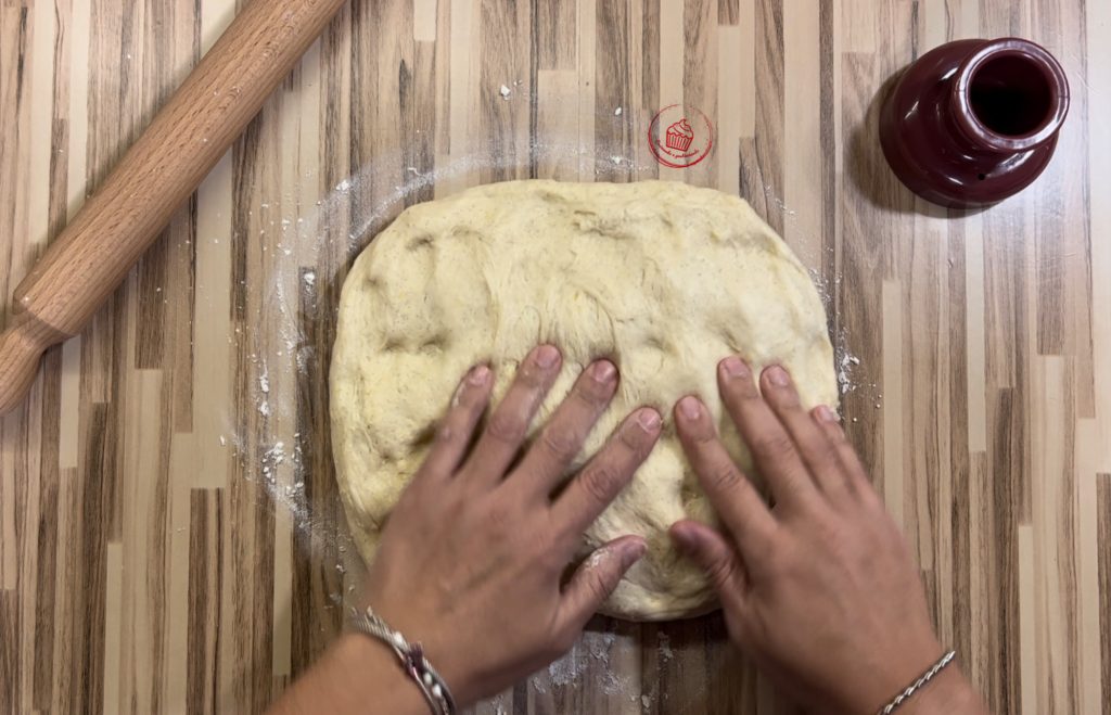 Ik kneedde met mijn handen ongeveer 2 minuten en liet 30 minuten rusten, bedekt met een doek.
