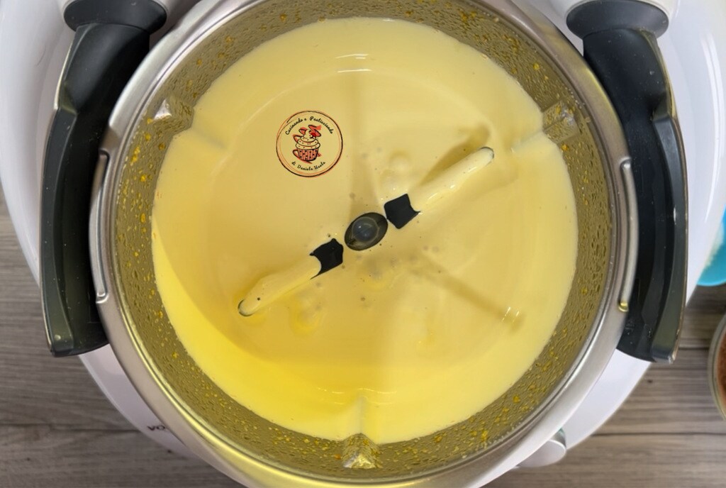 Plaats de vlinder in de keukenmachine en voeg de eieren toe. Klop 10 minuten op snelheid 4.