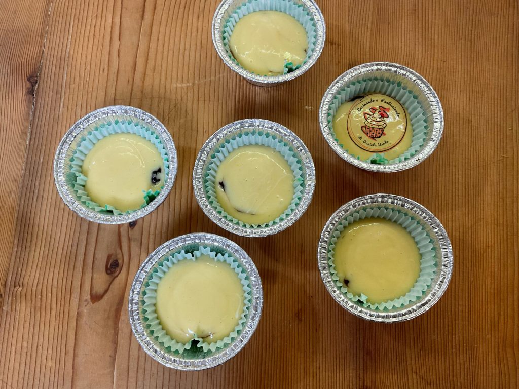 Klop alles opnieuw nog ongeveer 5 minuten op. Giet vervolgens 2 eetlepels van het mengsel in de bakvormpjes en voeg 1 theelepel jam toe.