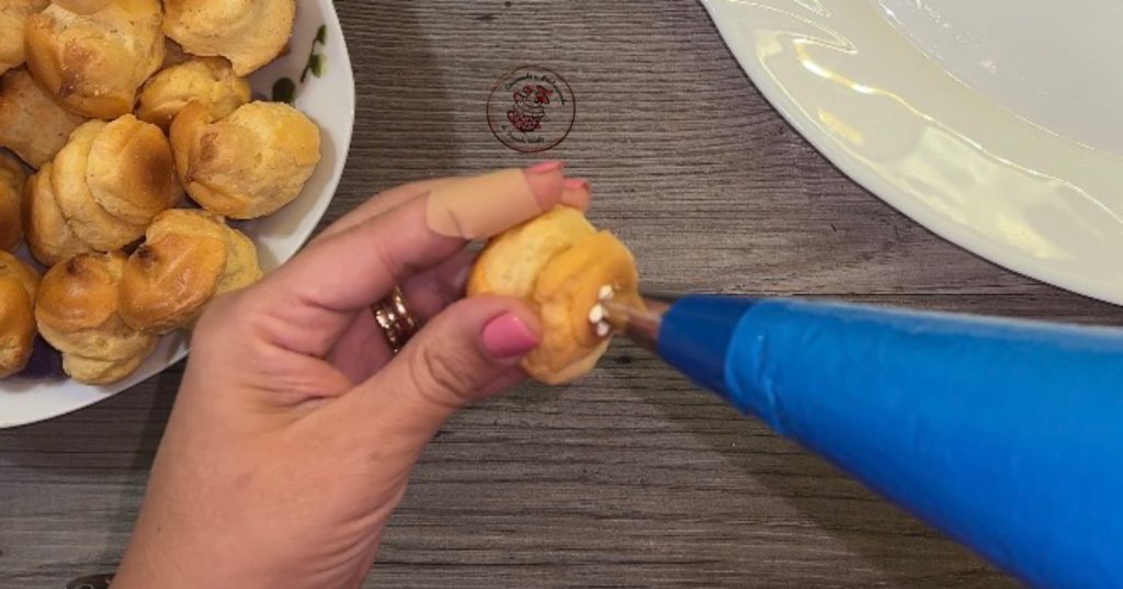 • We bereiden de crème voor, (recept hier) en vullen de spuitzak.