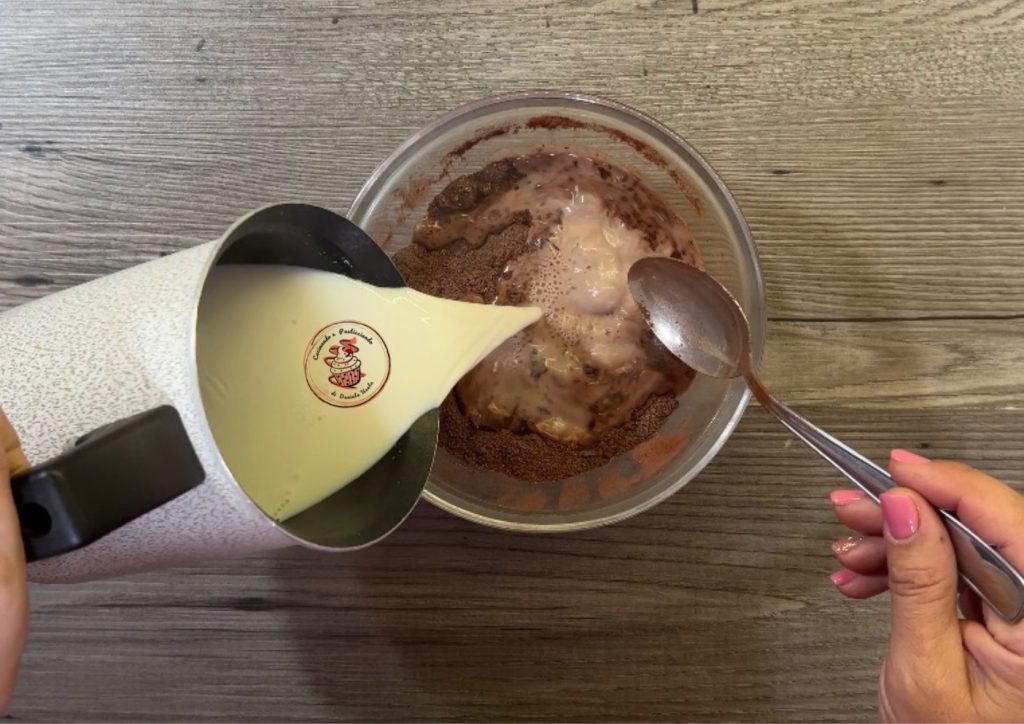• Voeg de kokende melk toe en roer om alle klontjes op te lossen.