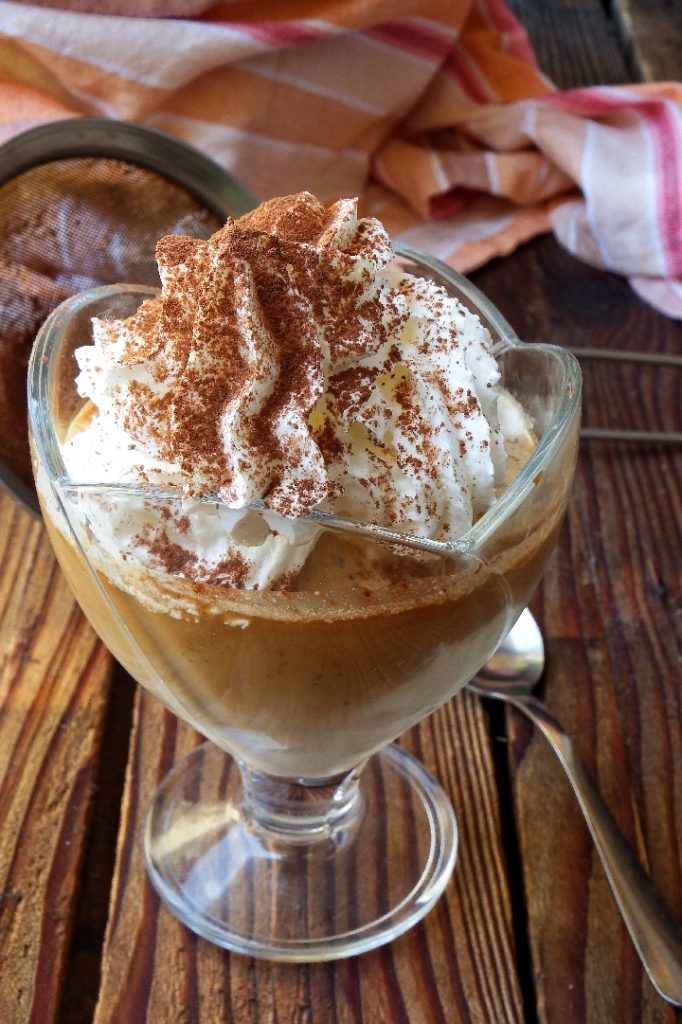 Giet de koffie erover, versier met een royale hoeveelheid slagroom, bestrooi met bittere cacao en serveer direct aan tafel. Eet smakelijk!