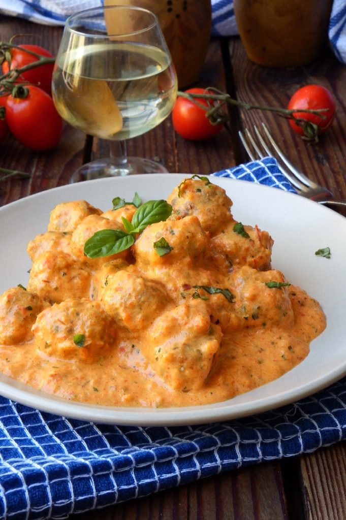 Voeg de zojuist bereide saus toe, zet het vuur lager en kook afgedekt met het deksel gedurende tien minuten, totdat de gehaktballetjes goed gaar en romig zijn. Breng ze meteen op tafel en eet smakelijk!