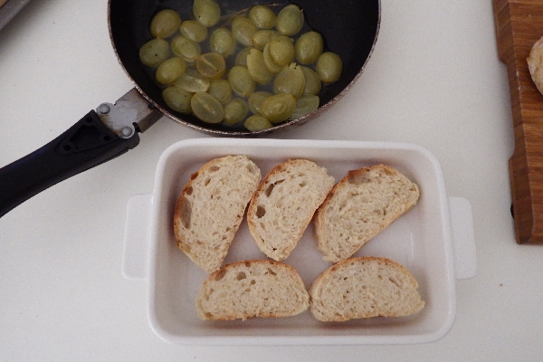 Haal het brood uit de oven, smeer onmiddellijk op elke plak de taleggio die je eerder van de korst hebt ontdaan. Decoreer ten slotte met de gekarameliseerde druiven, voeg een snufje peper toe en serveer onmiddellijk. Eet smakelijk!