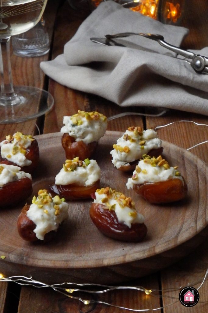 Dadels met gorgonzola en pistachenoten, een verfijnd en origineel voorgerecht, supersnel te bereiden voor een informeel staande borrel, of het kan het extra smakelijke idee zijn voor uw oudejaarsdiner!
