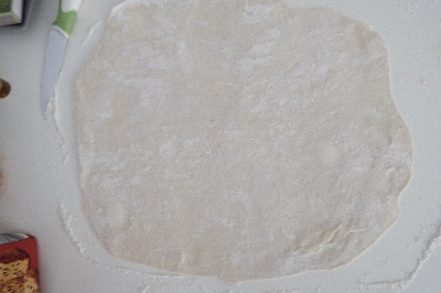 Doe de bloem 0 in de kom, voeg de koude boter in stukjes, het zout en beetje bij beetje het ijskoud water toe.