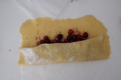 • Rol de strudel strak op zichzelf op met behulp van het bakpapier, verzegel de randen goed.