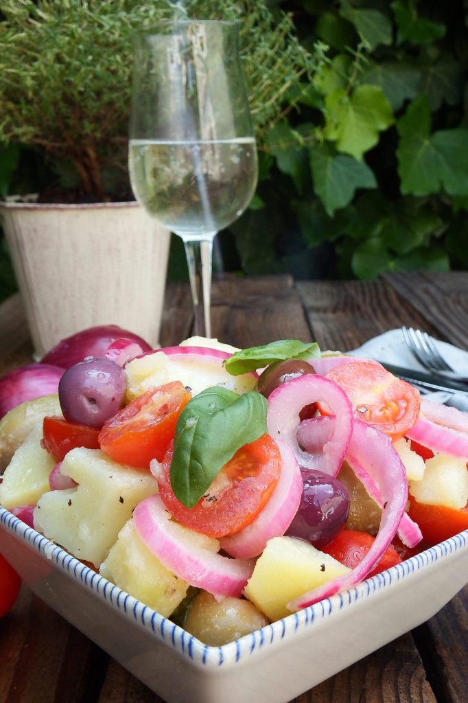 Het bestaat uit een basis van gekookte aardappelen, verrijkt met cherrytomaten, kappertjes van Pantelleria, olijven, uien en gekruid met basilicum en oregano. Een ware traktatie voor ons gehemelte!