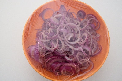 Schil eerst de uien, was ze, droog ze en snijd ze in dunne plakjes