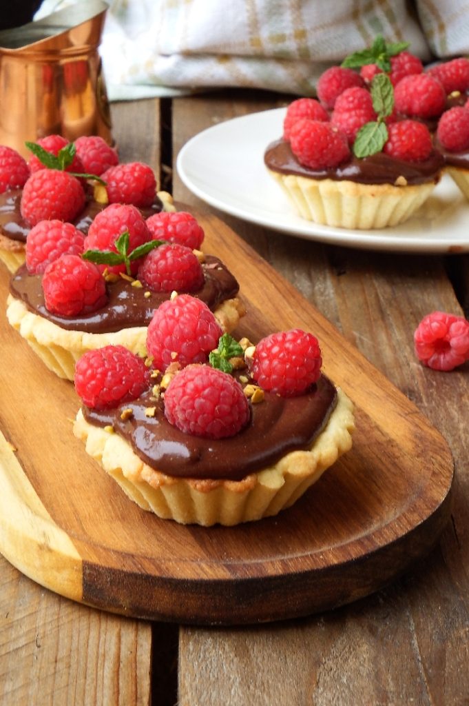 De tarteletjes met chocolade en frambozen zijn een heerlijke en smakelijke eenpersoonsdessert, ideaal voor feestdagen of voor grote gelegenheden waar je je gasten wilt verrassen!