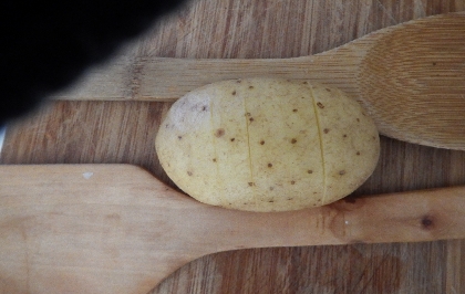 Was eerst de aardappelen grondig. Leg de aardappel tussen twee houten lepels en maak niet te dicht opeenstaande inkepingen. Meng apart in een kleine kom 40 ml extra vergine olijfolie met een theelepel zout. Bestrijk de aardappelen op het oppervlak en in de gleuven. Leg ze in de ovenschaal die licht is ingevet met een beetje olie en bak ze in een voorverwarmde oven op 200°C gedurende ongeveer 25 minuten, totdat ze beetgaar zijn.