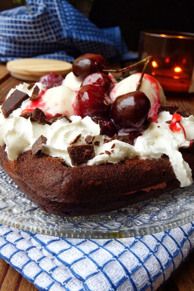 Na de hartige wafels die jullie zo lekker vonden, wil ik vandaag een andere versie laten zien om je vingers bij af te likken, maar deze keer zoet: de Zwarte Woud wafels. Cacao wafels, gevuld met ijs, slagroom, chocoladeschilfers en kersen. Een echte traktatie voor je brunch of voor speciale ontbijten.
