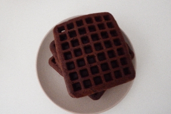 • Bestrijk het wafelijzer met gesmolten boter. Giet er twee lepels beslag in. Sluit het ijzer, plaats het op het vuur en kook twee minuten per kant op middelhoog vuur. Ga op deze manier door tot alle ingrediënten op zijn. In totaal moet je vier wafels hebben.