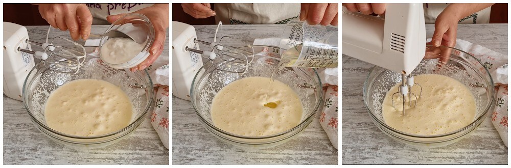 Voeg de kokos yoghurt en zonnebloemolie toe en klop nog enkele momenten.