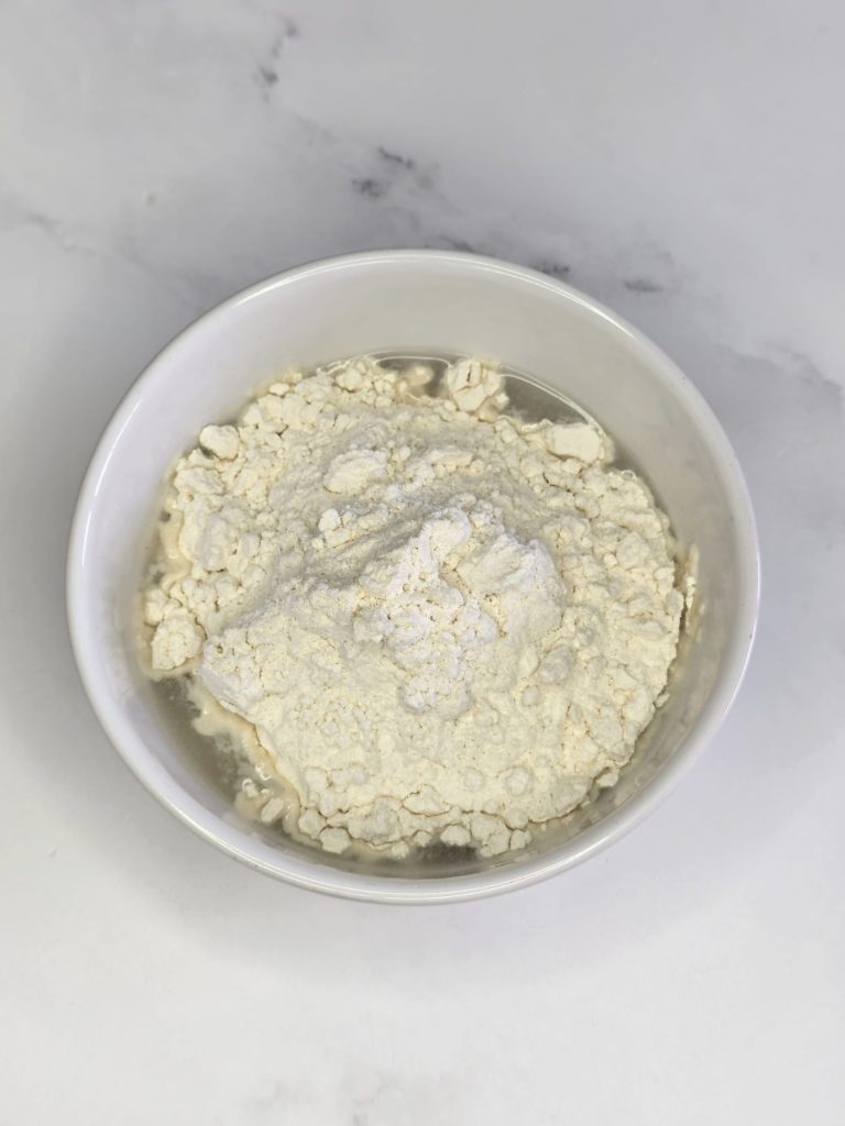 Doe het water in een kom waarin je de gist oplost en voeg de bloem toe.