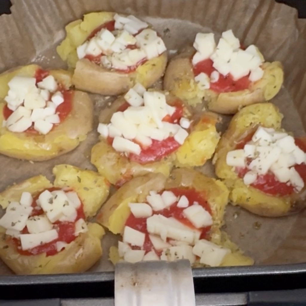Bakken in een airfryer op 190°C gedurende 5 minuten, of in een voorverwarmde oven op 180°C gedurende 10 minuten, totdat de kaas gesmolten is.