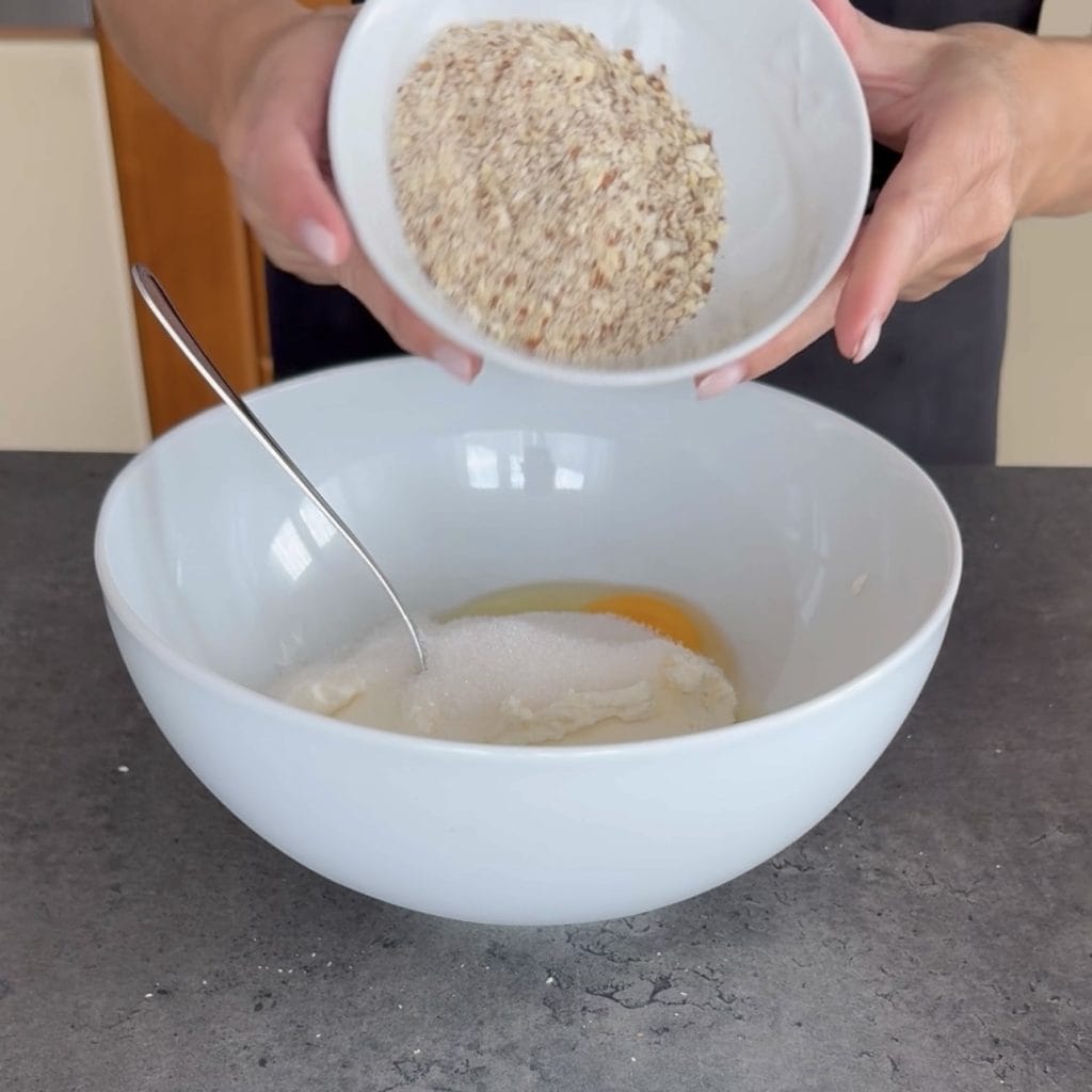 Doe de ricotta en het ei in een kom,