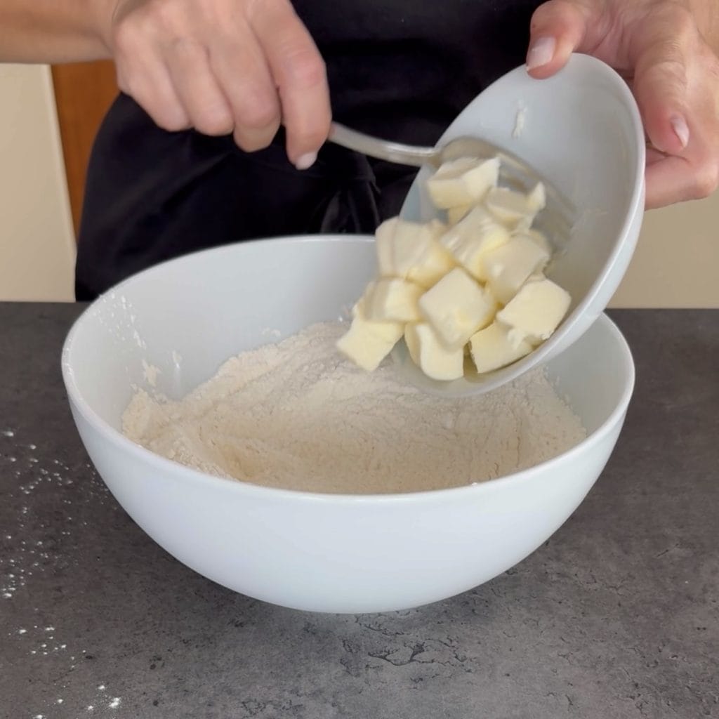 de koude boter in stukjes,