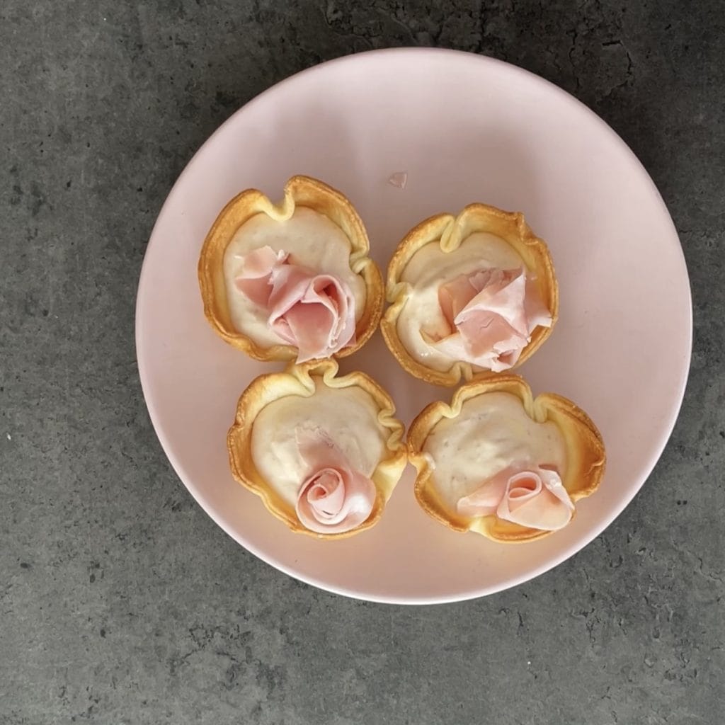 Bakjes met briseedeeg gevuld met ham