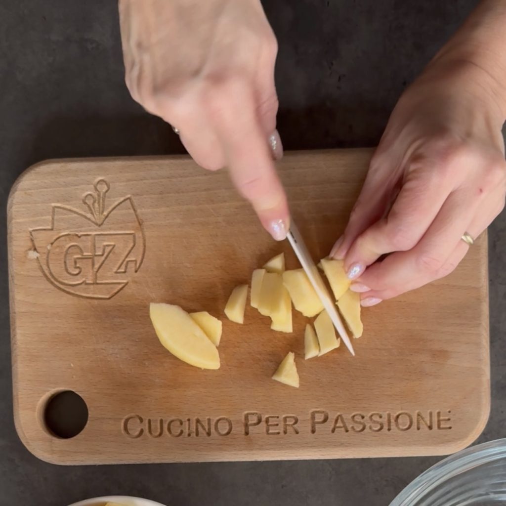 en snijd ze vervolgens in kleine stukjes die je in een kom doet.
